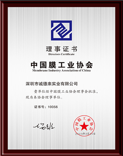 • 中國膜工業協會理事證書